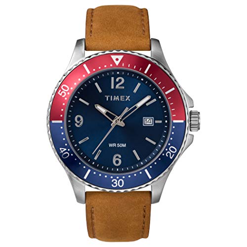 Buy Timex Men's Diver-Inspired 3-Hand 43mm Watch – Silver-Tone Case Blue Dial Red Accents with Stainless Steel Bracelet
